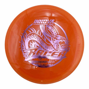 Right out of the box, the Innova Star Racer flies like your trusted, seasoned Destroyer that took months to break in. This long-range control driver features a uniquely curved, beaded rim that delivers a smooth, mild fade. With a 6 Glide rating, the Racer stays in the air longer, carrying towards your target even on a hyzer release. Whether you're throwing forehand or backhand flip-up lines, you can expect consistent distance every time. For Advanced and Pro players, when it's time to replace that perfectly-seasoned Destroyer, reach for the Racer.